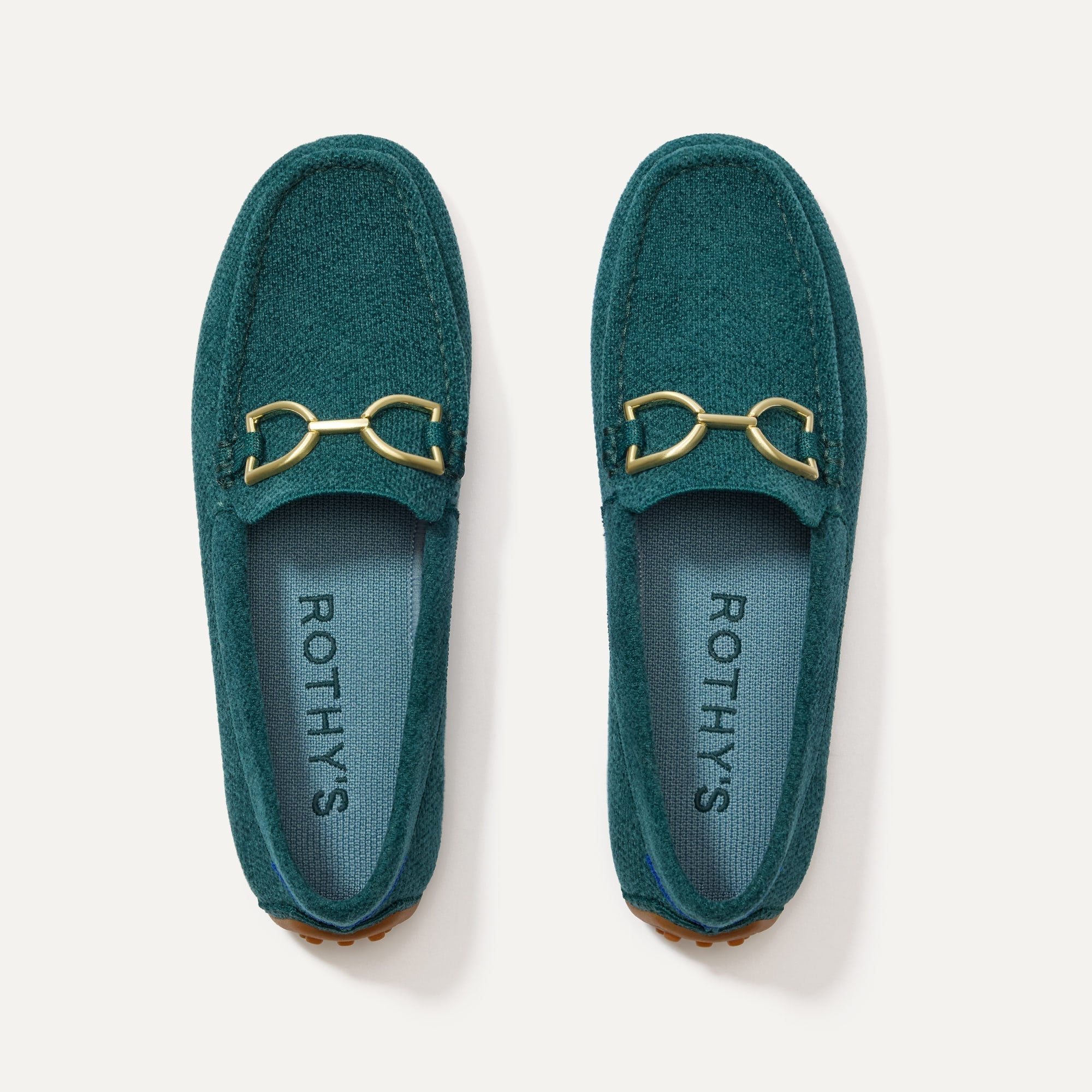 • Soft. flexible upper in jade green with a gold hardware signet bit on the vamp.