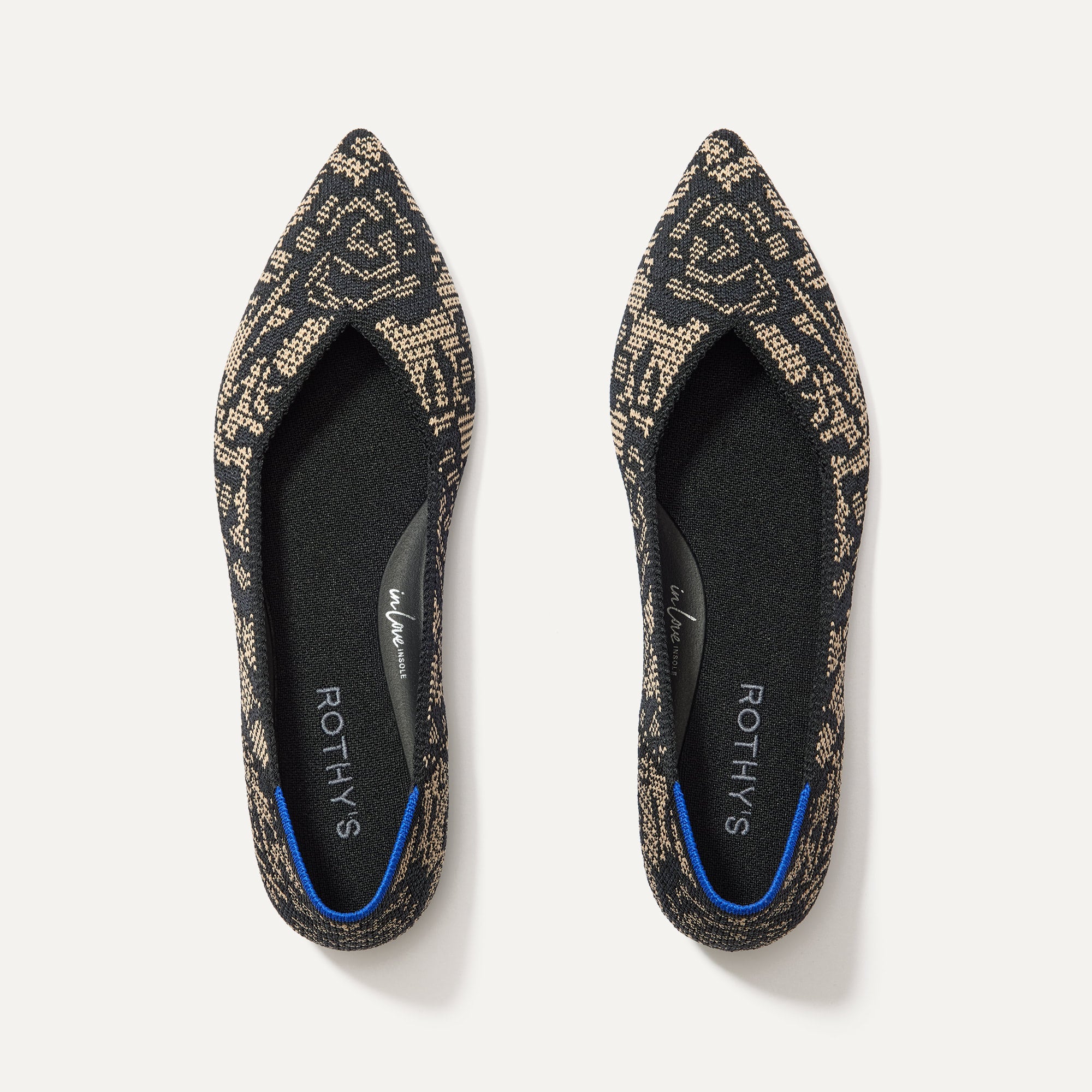 • Premium knit upper with a smooth. refined shape in beige with a black floral pattern.
